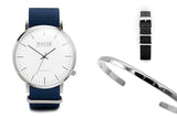 Our Harbor series is of a fine and minimal aesthetic. These watches can be dressed up or down, ready for any occasion. Special Pack Includes: Harbor, Marin + Black Tactical Strap + Silver Water Cuff Bracelet. Order your pack and save 17%!