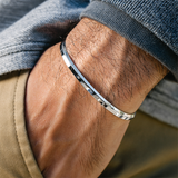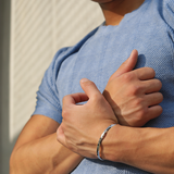 The Water Cuff Bracelet in Silver is minimal, adjustable, and worn by all.
